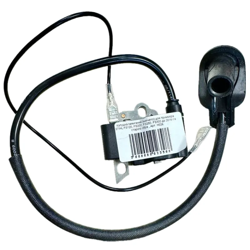 Катушка зажигания для триммера STIHL FS-120, FS-200, FS-250  Модуль зажигания старого образца, нельзя использовать для мотокос новой модификации  Особенности: колпачок свечи зажигания Код детали: 4134-400-1301D Применение: Stihl FS 120    Stihl FS 200    Stihl FS 250 Stihl FS 120 R   Stihl FS 200 R    Stihl FS 250 R