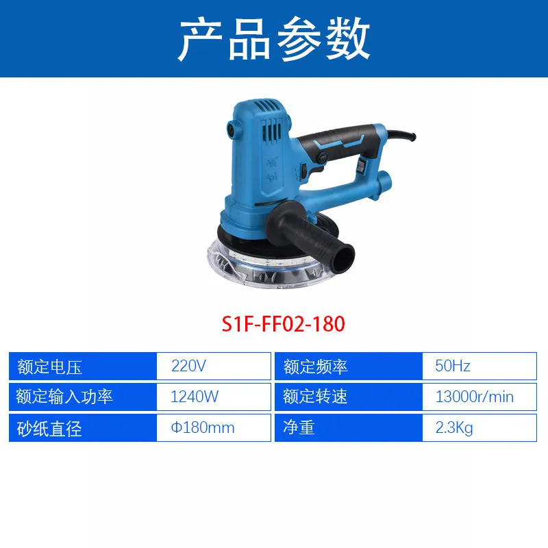 Шлифовальная машина для стен Dongcheng S1F-FF02-180 Номинальное напряжение - 220В Номинальная частота - 50Гц Номинальная входная мощность - 750 Вт. Номинальная скорость - 1500-2700г/мин. Диаметр наждачной бумаги - 180мм. Вес нетто - 2,3 кг. Особенности: - Регулируемая скорость - Самоочистка - Плавный пуск - Шлифовка внутренних углов - Светодиодная подсветка