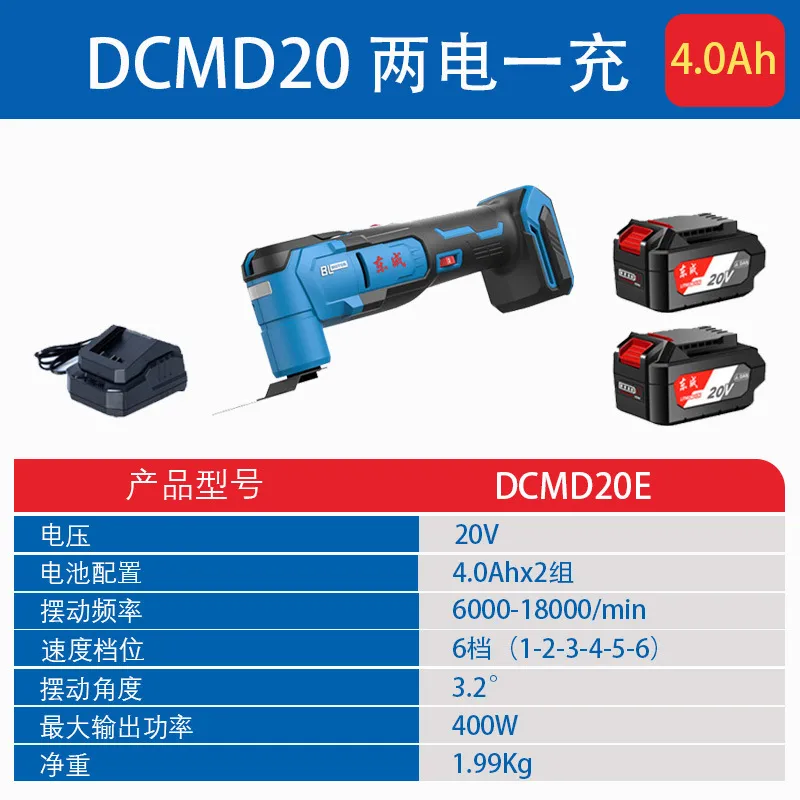 Реноватор (мультитул) аккумуляторный бесщеточный Dong Cheng DCMD20 (АКК 4.0AH 20V 2шт) Реноватор – вспомогательный многофункциональный аккумуляторный инструмент. Реноватор аккумуляторный Dong Cheng DCMD20 или сетевой: какой лучше? Если оператор не хочет ограничивать свое перемещение по объекту или мастерской, а работа будет непродолжительной, то аккумуляторного реноватора будет достаточно. Характеристики: Частота осцилляции в мин 6000-20000 Угол осцилляции 3,2° Вес, кг 1.9