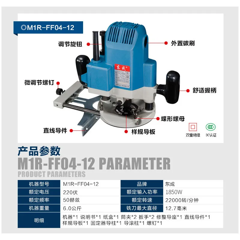 Ручной фрезер Dongcheng M1R-FF04-12 1850 Вт 12мм Рабочий ход 54 мм 22000 об/мин