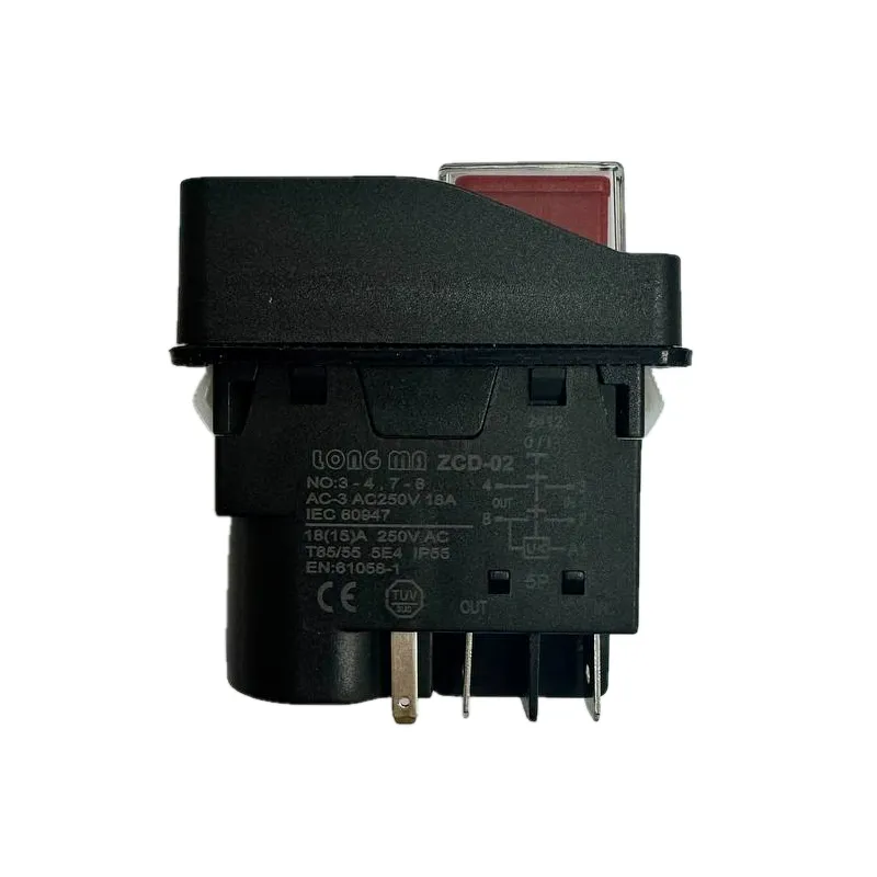 Выключатель (131-5) для бетономешалки 5 контактов, компрессор, св. станок Код товара: 001-0020 Подходит для: бетономешалки 5 контактов, компрессор, св. станок Кнопка включения DKLD DZ-6 со встроенным пускателем применяется для включения техники таких как: точильный и сверлильный станки, пилорама, бетономешалка. Производится в двух вариантах: с 4 и 5 контактами. Пятый контакт заведен на двигатель, на его корпусе есть мини термостат с фиксированной температурой отключения и через термостат, и выполняется функция тепловой защиты двигателя